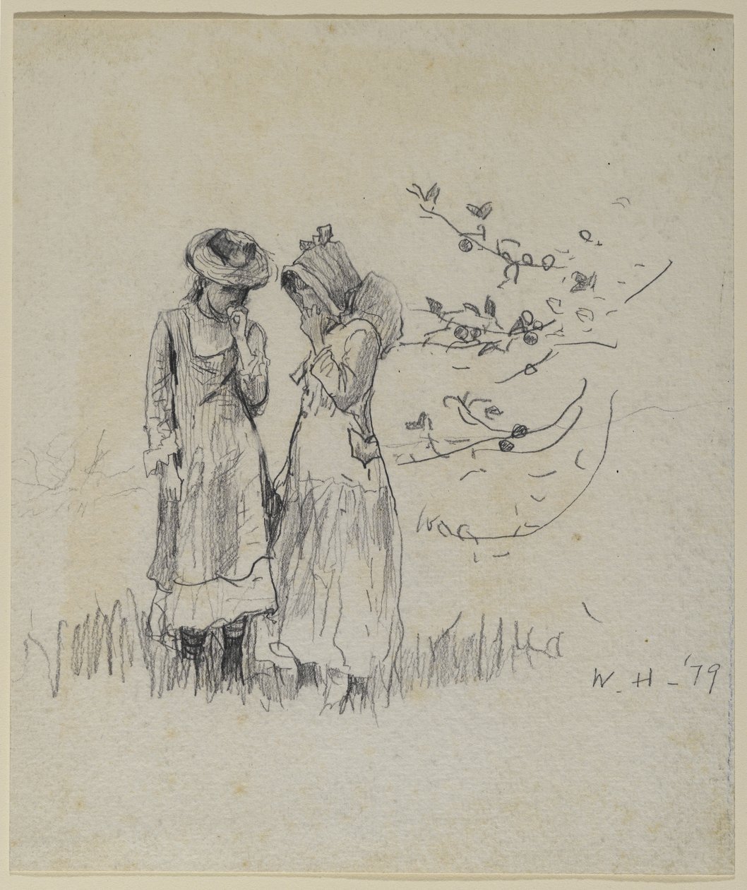 Two girls in a field, 1879(Two girls in a field, 1879 (graphite on paper))Winslow Homer |