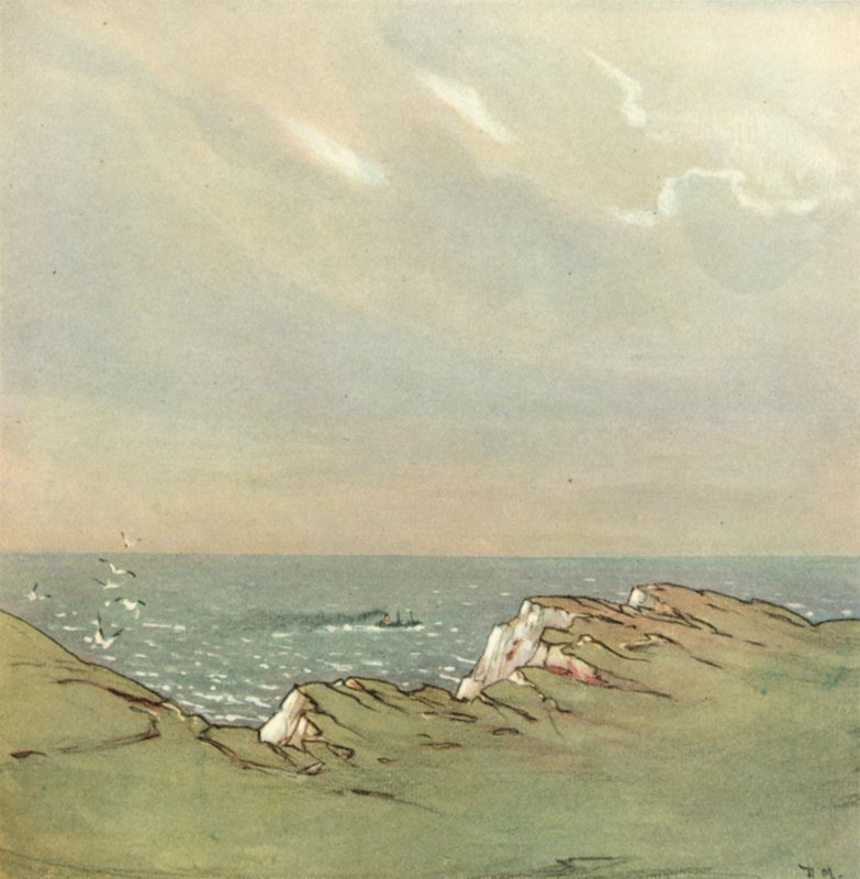 rudyard kipling · verse · poem · poems · poetry · sussex · england · english · countryside · channel · boat · gulls · white · cliffs · Private Collection / Bridgeman Images · / Look and Learn |