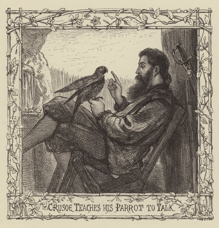 robinson crusoe · daniel defoe · parrot · Private Collection / Bridgeman Images · / Look and Learn |